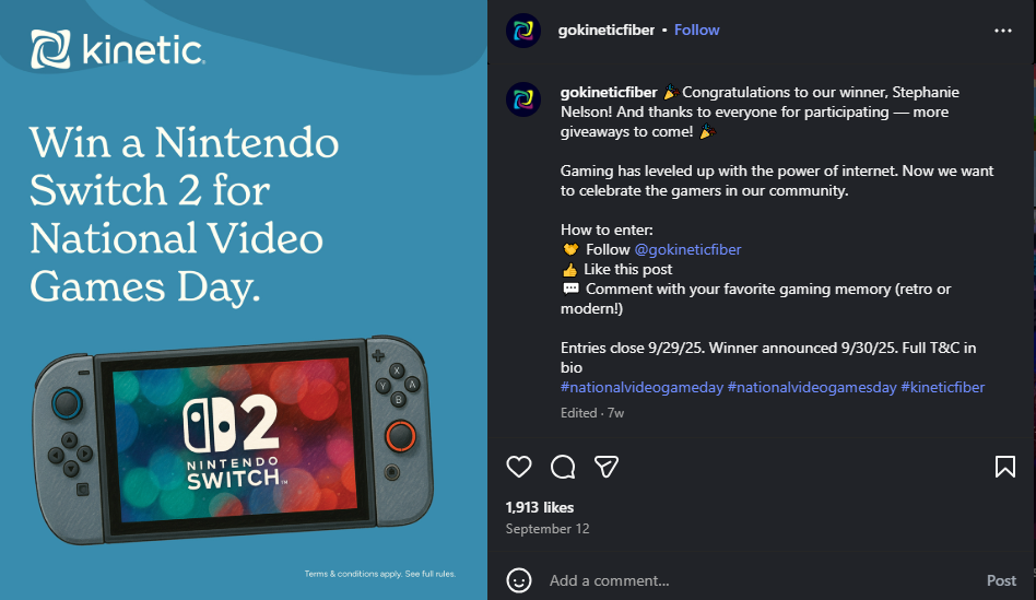 The key is to keep the entry rules quick and fun, like sharing a memory, tagging a friend, or answering a gaming trivia question. Giveaways work especially well on this day because people are already in a playful mindset and more willing to participate.