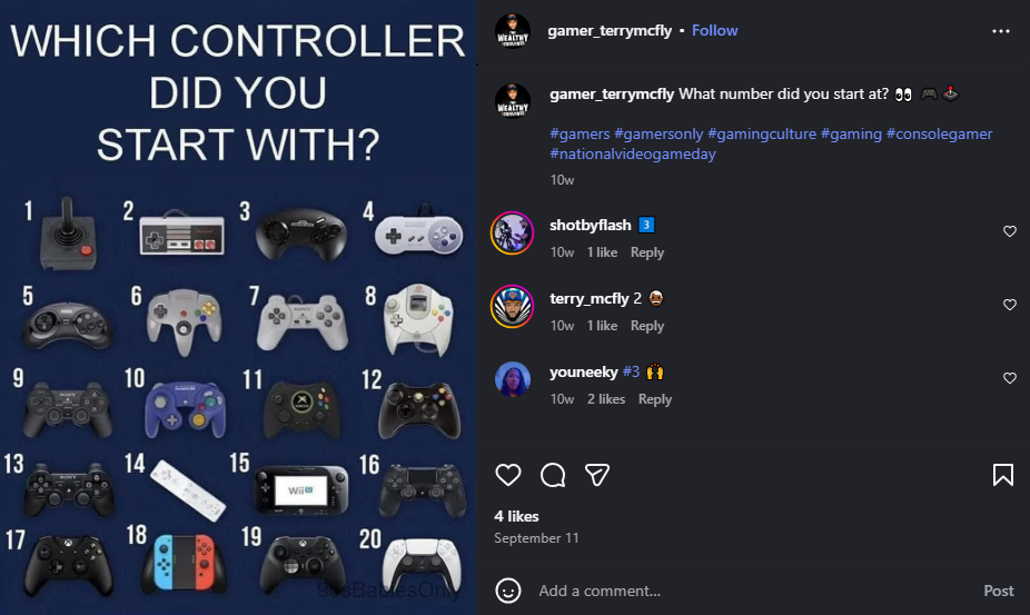 With that kind of emotional connection, National Video Game Day is an ideal opportunity to invite your audience to share their own gaming stories in a simple, inclusive way. It could be their first console, the game that kept them up all night, a childhood memory, or the moment they finally beat a final boss they had struggled with for weeks.