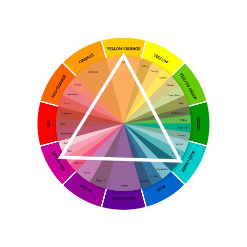 The color wheel is a circular diagram of colors arranged by their chromatic relationship. It showcases the spectrum of hues, starting with primary colors and progressing through secondary and tertiary colors. This visual tool aids in understanding color relationships, such as complementary and analogous schemes and in our case triadic color schemes, making it essential for artists, designers, and anyone working with color.